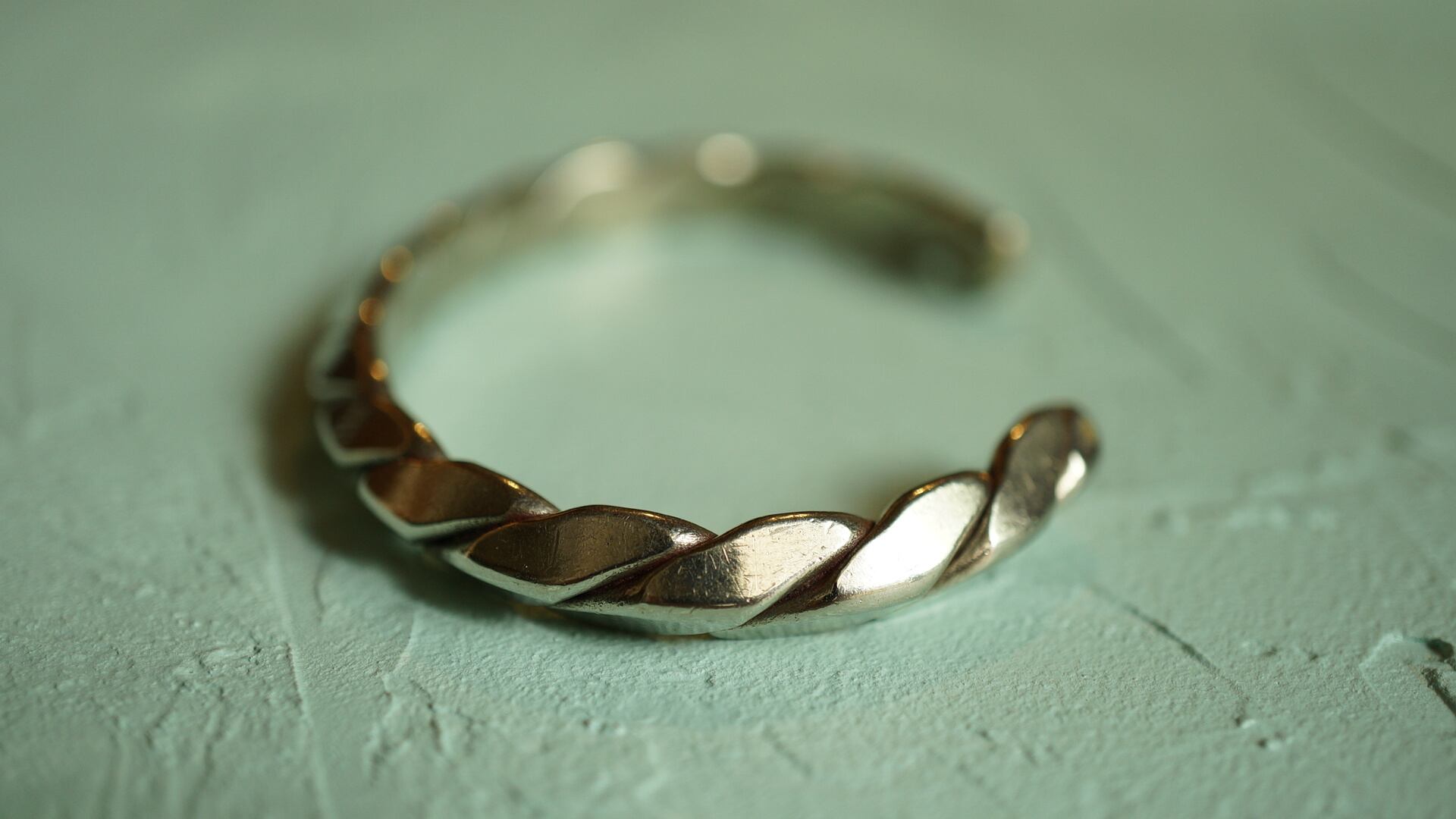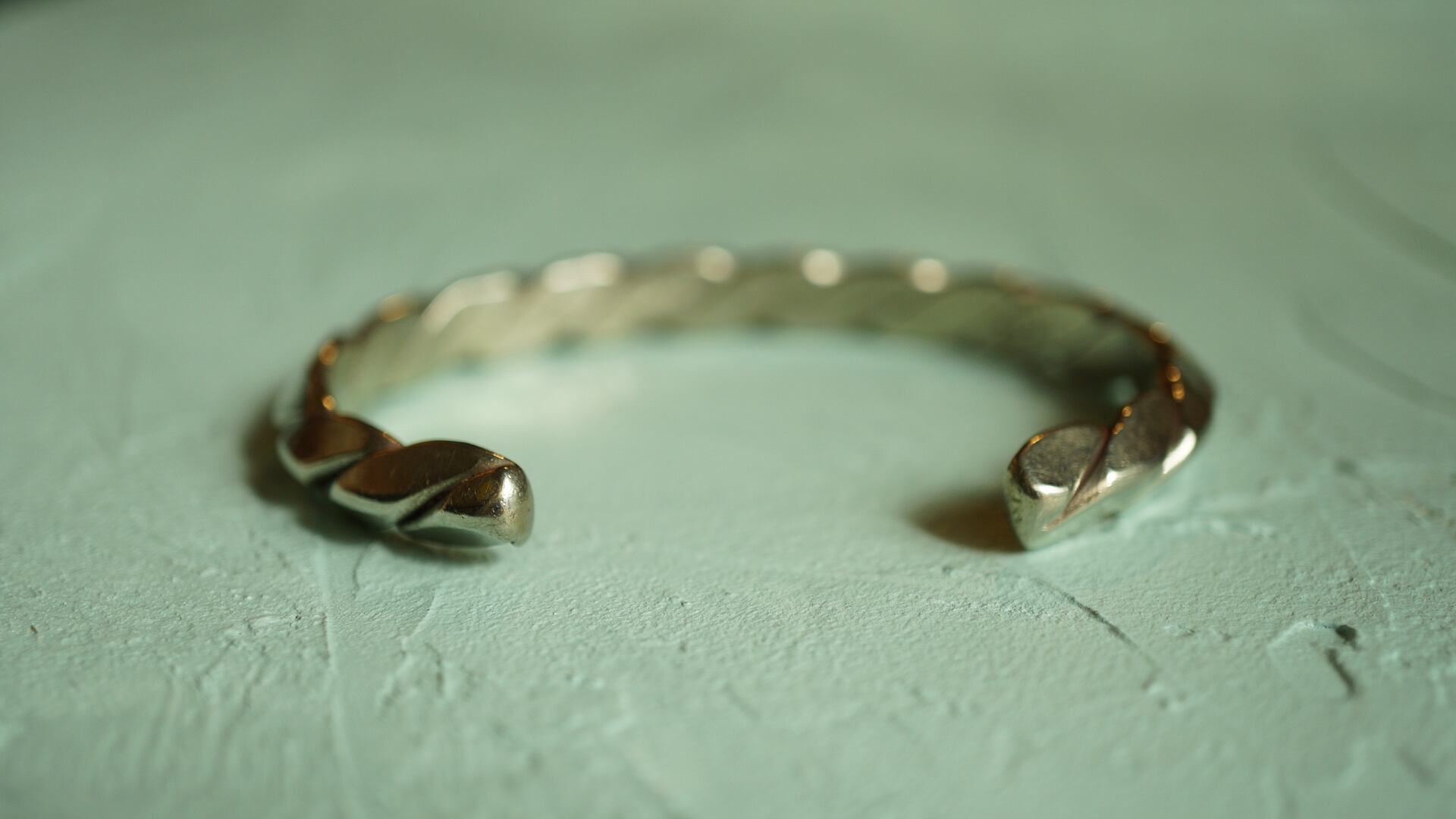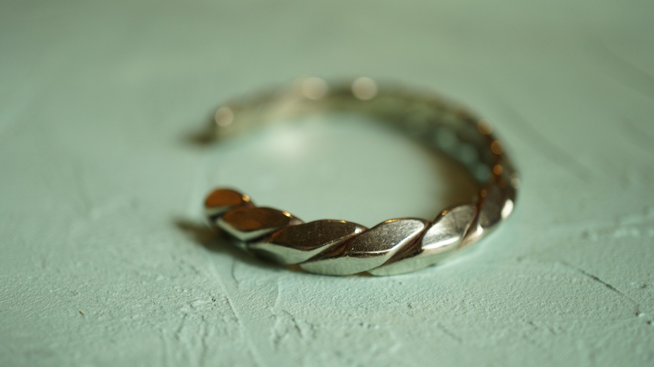 チェーンのようにツイストされたナバホ族のバングルで一見インディアンジュエリーに見えないところが良いです。変化球が好きな方はいかがでしょうか?