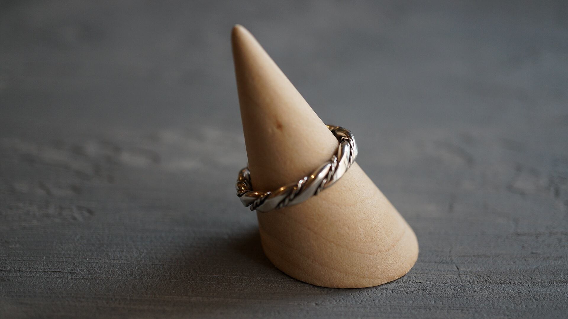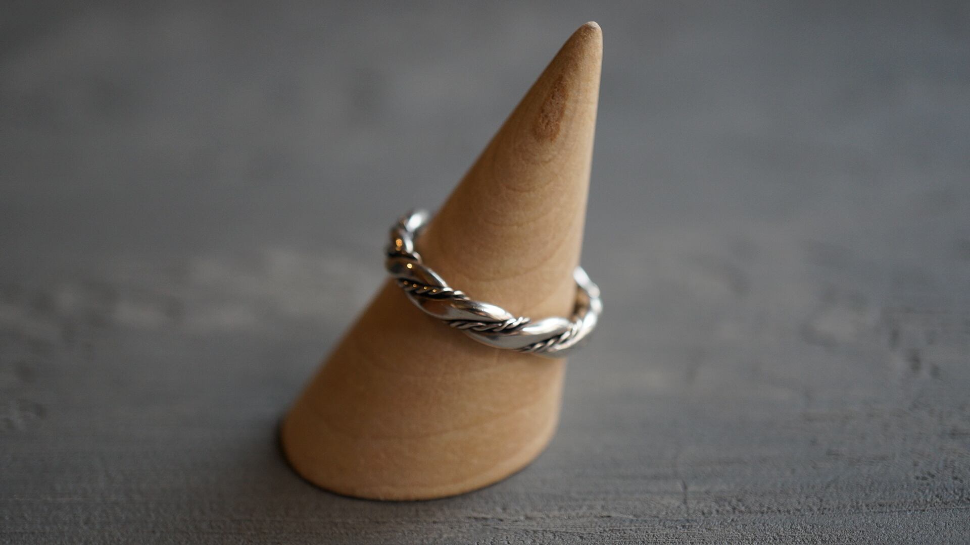 シルバーをツイストして作り上げていったツイステッドワイヤーのリング、無骨なデザインに見えますが、着けてみると意外にも綺麗な雰囲気になります。