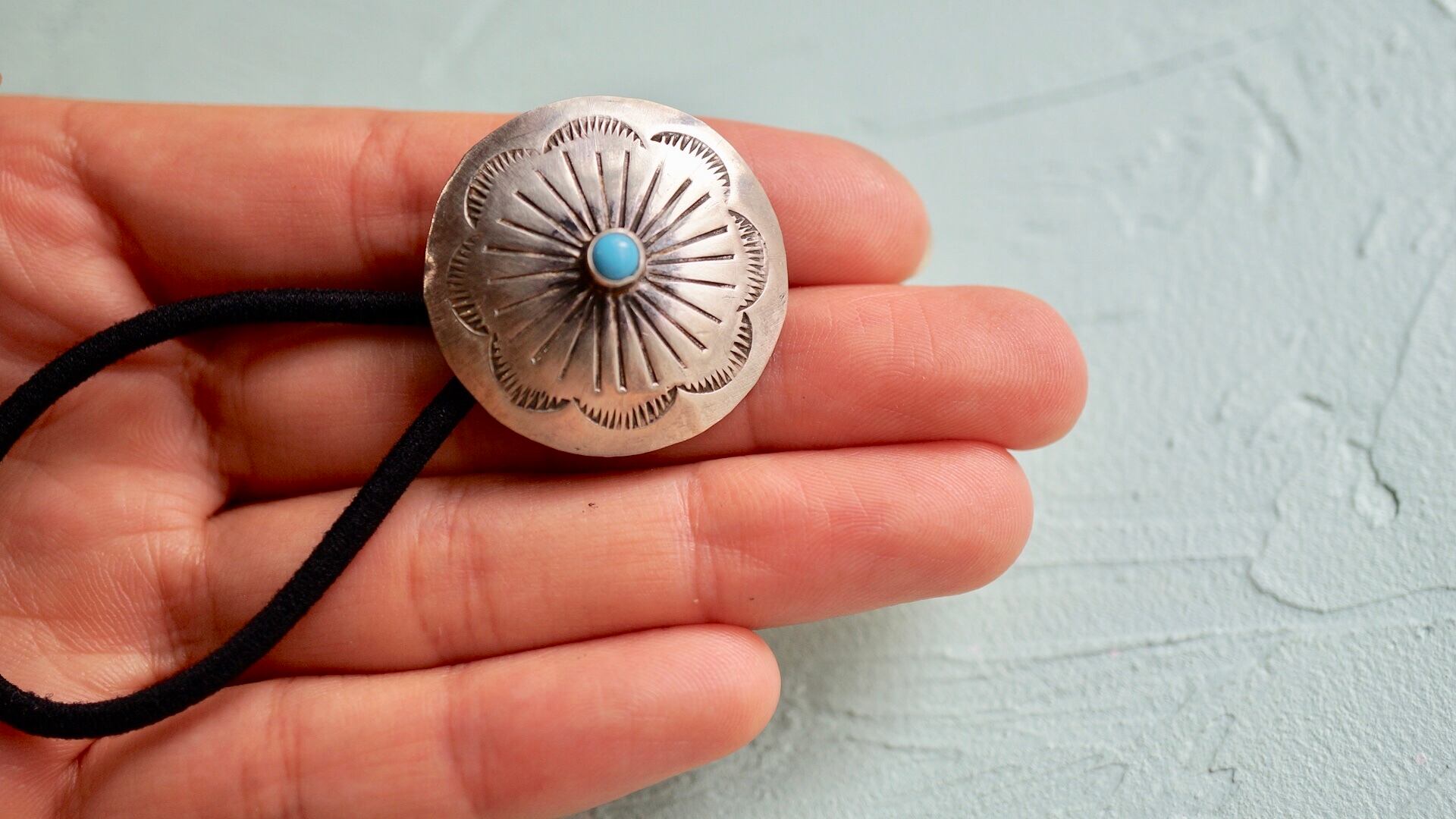 ワンポイントで雰囲気を作ってくれるナバホ族のヘアーコンチョです。