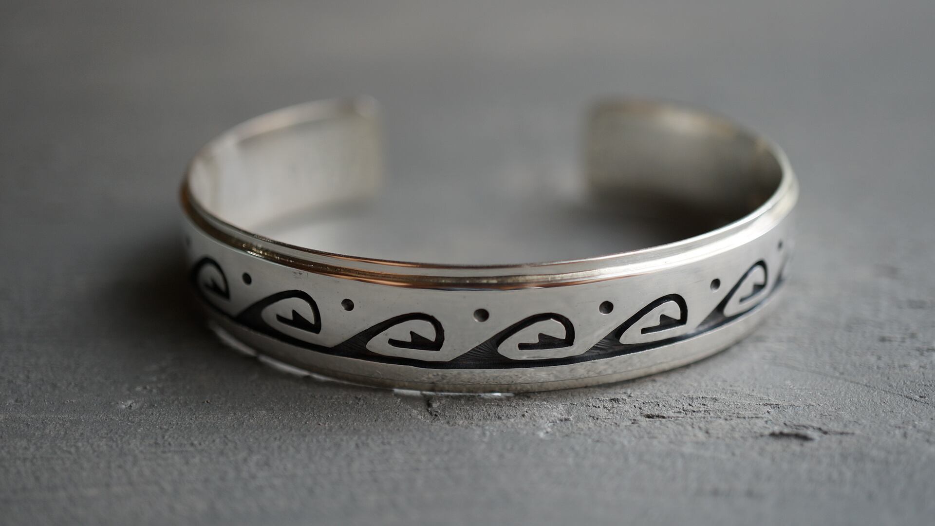 丁寧にカッティングされたウェーブと大小サイズの違うプレートのオーバーレイデザインが美しい仕上がりになっています。