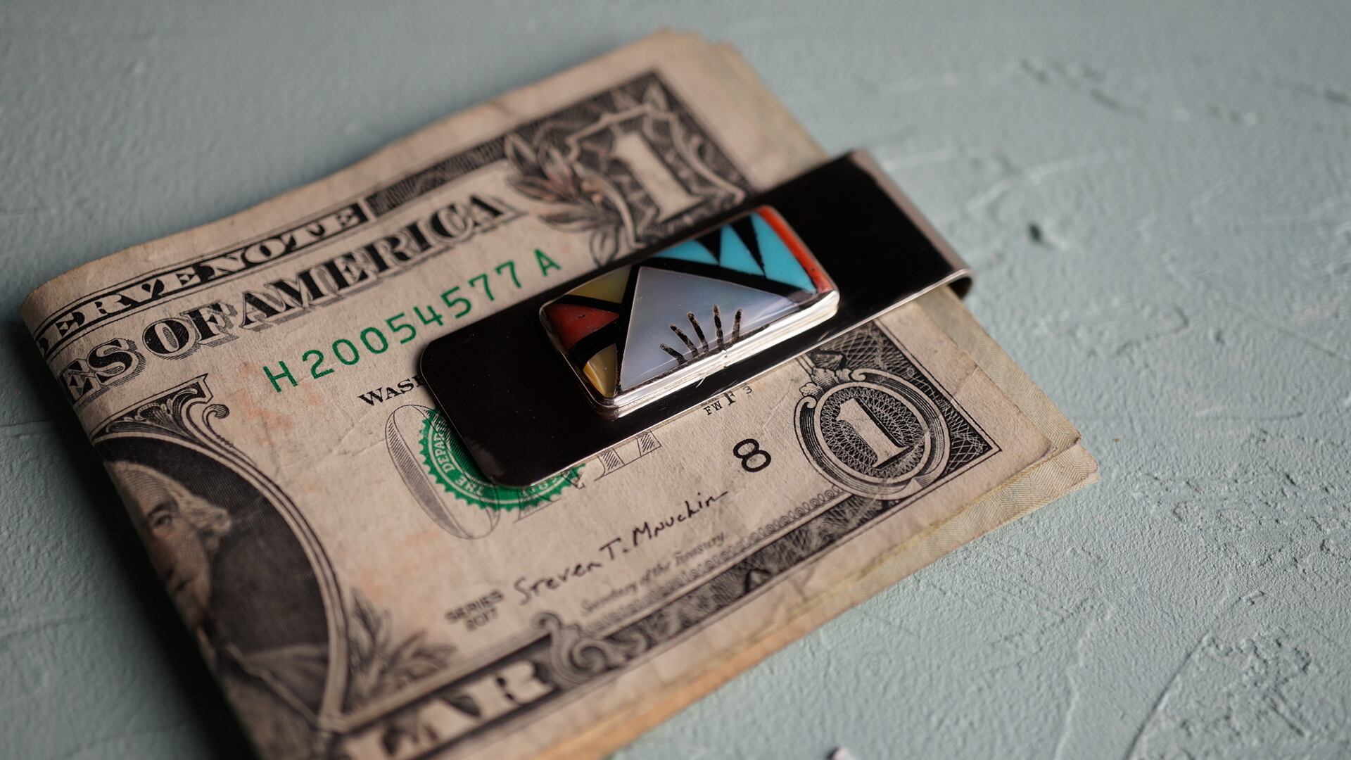 ズニ族のアーティストによる、マルチカラーインレイのマネークリップです。