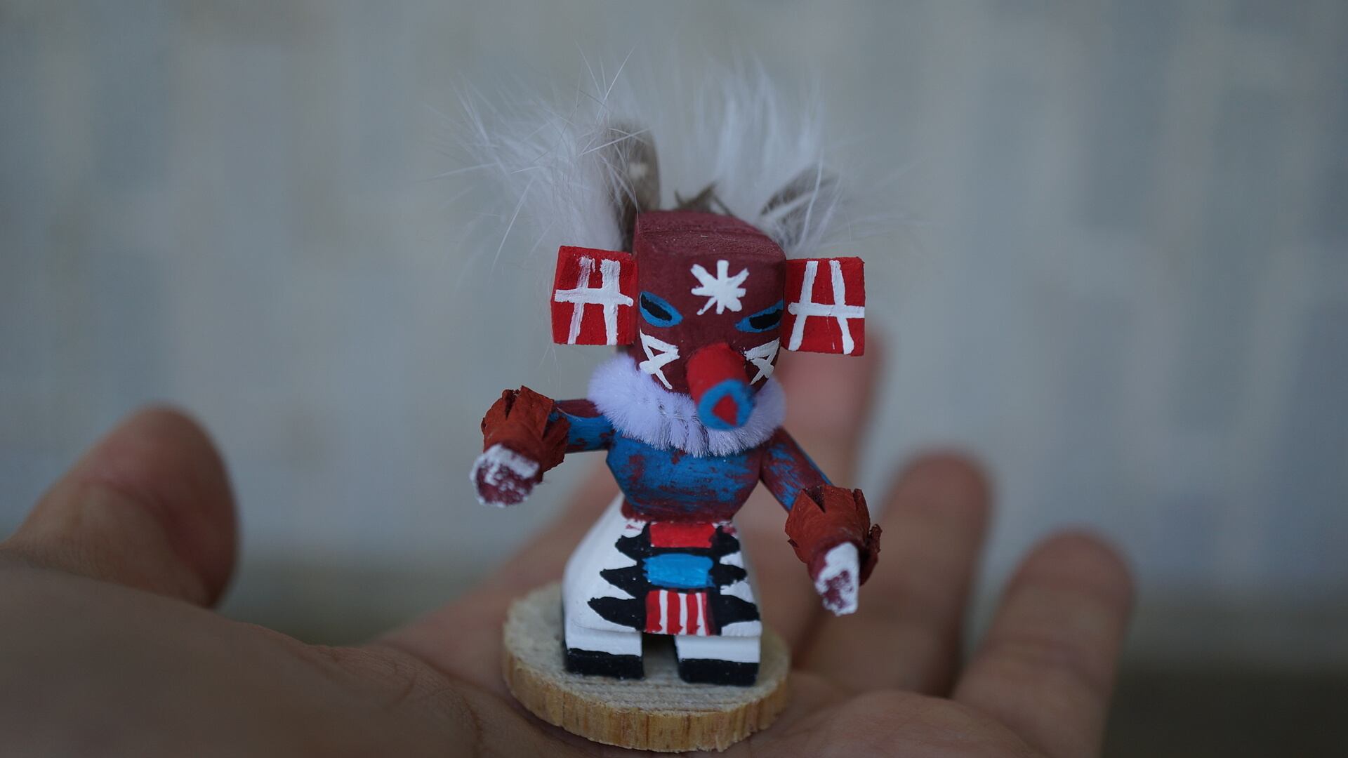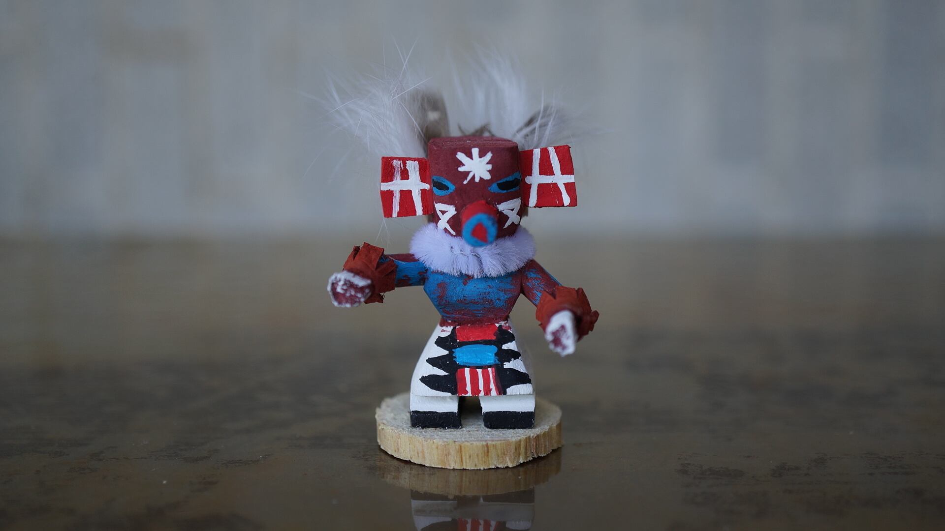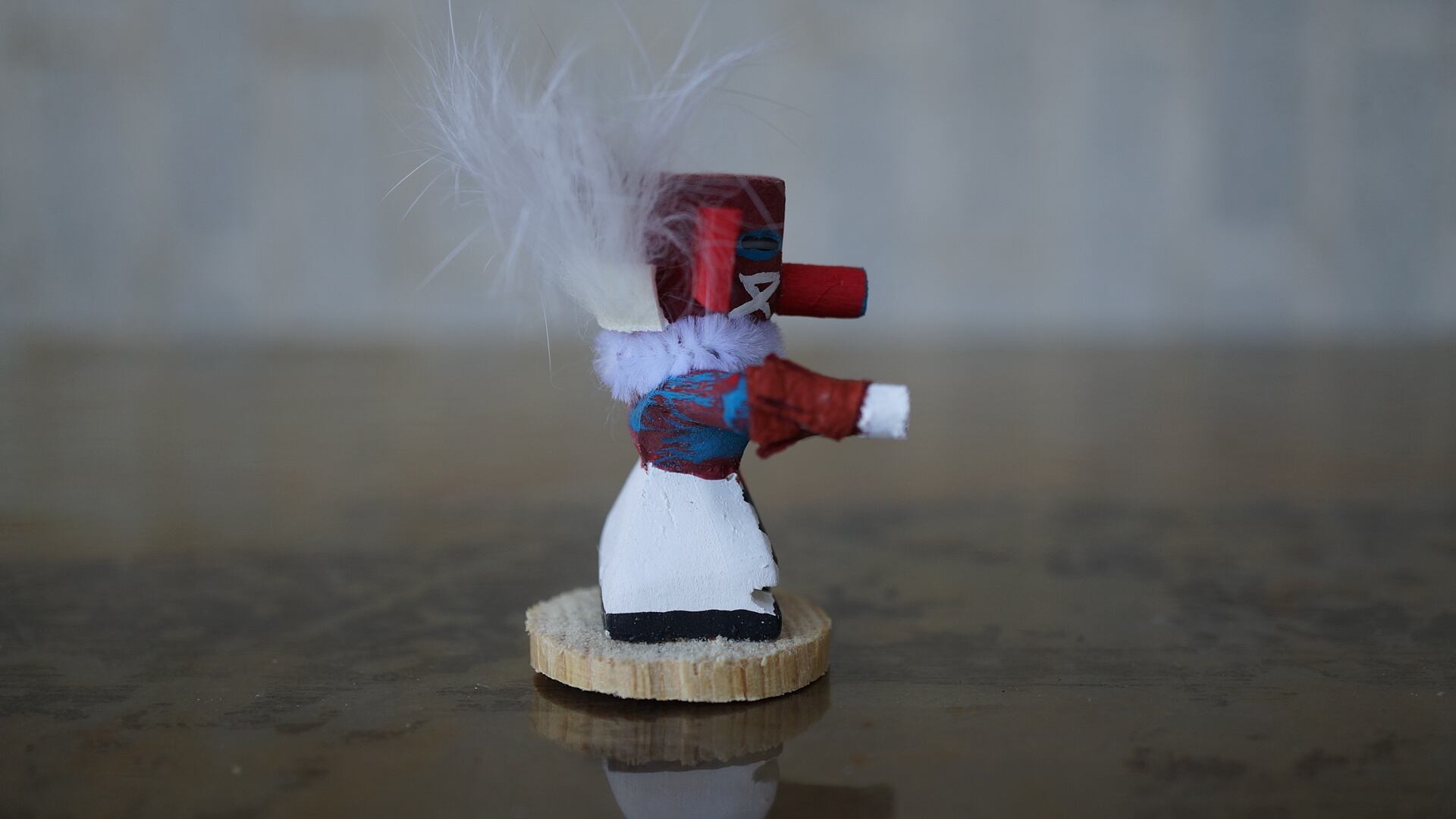 ナバホ族のアーティストによるハンドメイドのミニサイズのカチナドールです。