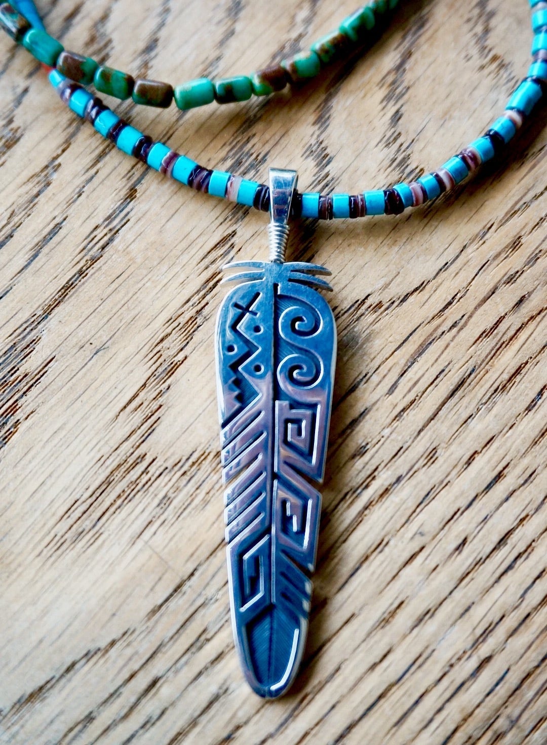 ホピ族 イーグルフェザー ペンダント Ruben Saufkie作