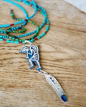 ホピ族 ココペリ&イーグルフェザー ペンダント Ruben Saufkie作