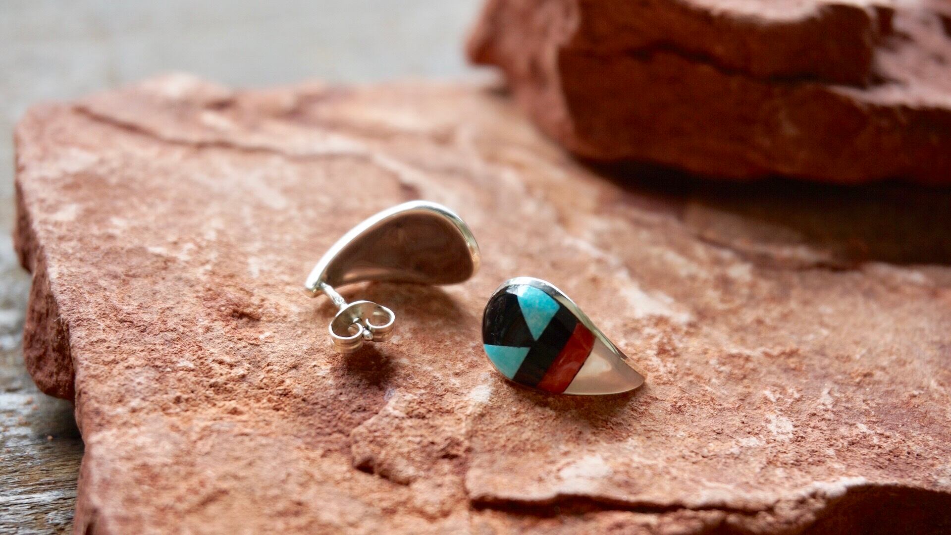 ズニ族 インレイ カッティング ティアドロップ ピアス