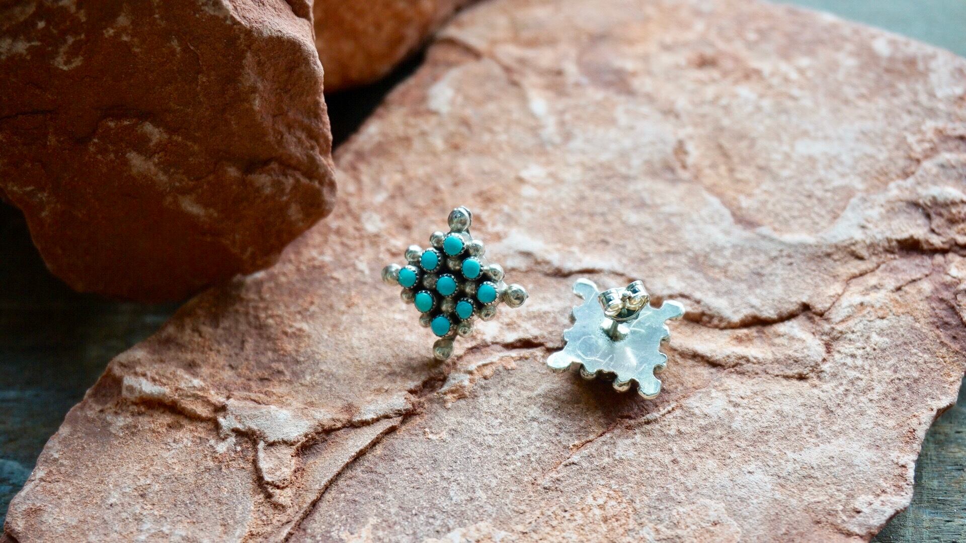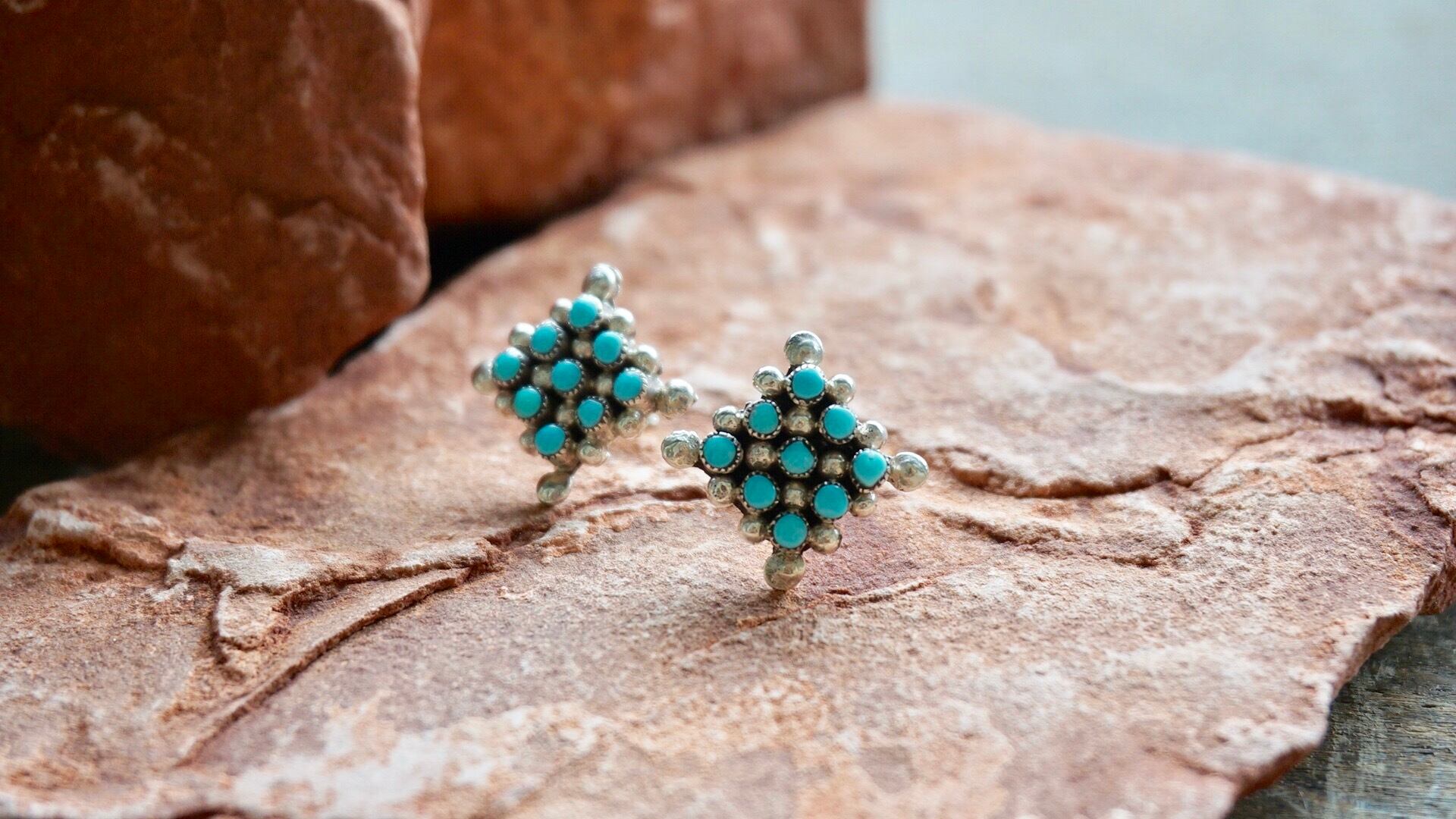 ズニ族 ターコイズ ひし形 ピアス